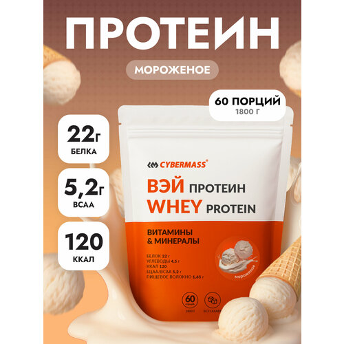 Протеин сывороточный CYBERMASS Whey Protein с BCAA для набора мышечной массы и похудения, Мороженое, 1800г 60 порций