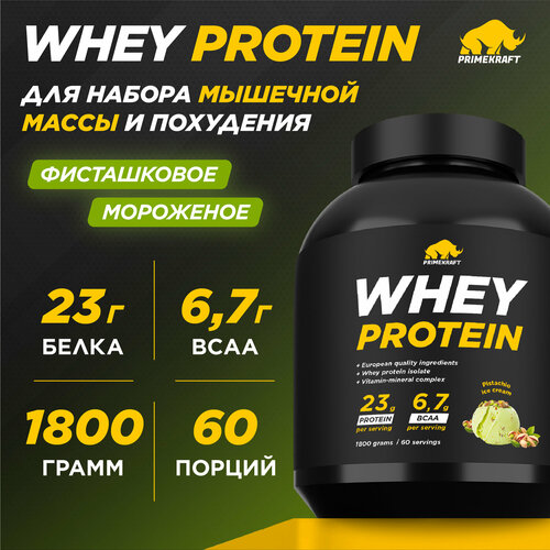 Протеин сывороточный PRIMEKRAFT Whey Protein, Фисташковое мороженое (Pistachio ice cream), банка 1800 г / 60 порций