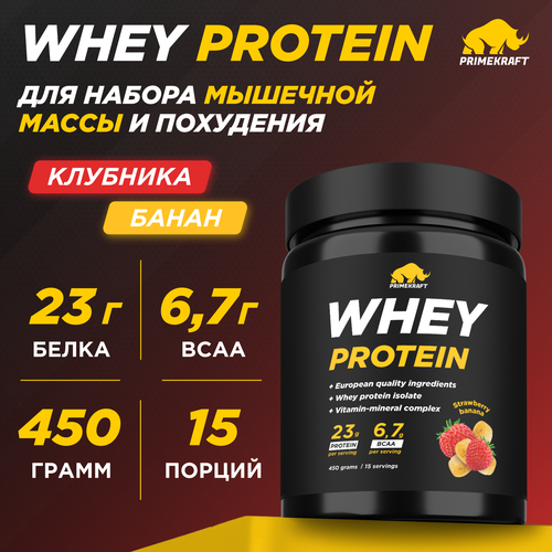 Протеин сывороточный PRIMEKRAFT Whey Protein, Клубника-банан 450 г / 15 порций
