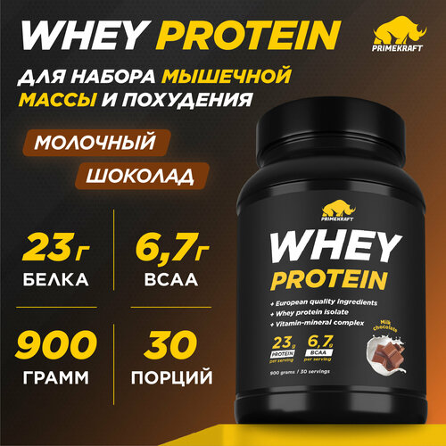 Протеин сывороточный PRIMEKRAFT Whey Protein, Молочный шоколад (Milk chocolate), банка 900 г / 30 порций