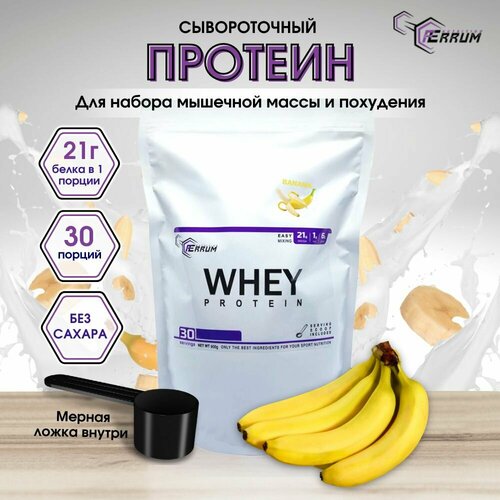 Протеин Whey Protein от Ferrum Nutrition/ Сывороточный протеин / Протеиновый коктейль для похудения / вкус: банан. 900 грамм, 30 порций.