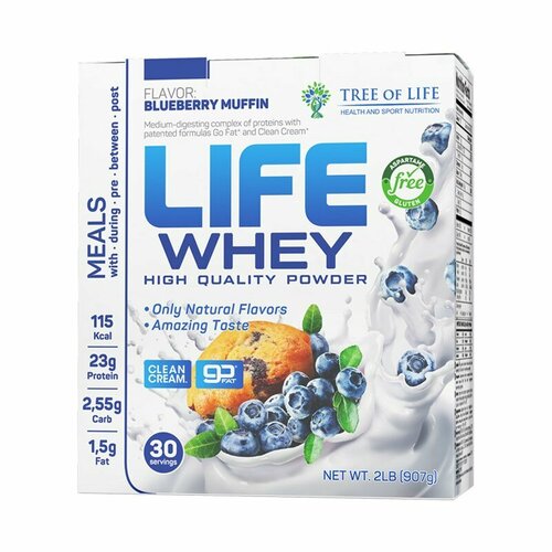 Сывороточный протеин Life Whey 2lb (907гр) со вкусом Черничный Маффин 30 порций