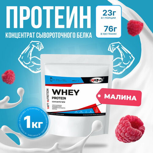 WATT NUTRITION Протеин Whey Protein Concentrate 80%, 1000 гр, малина