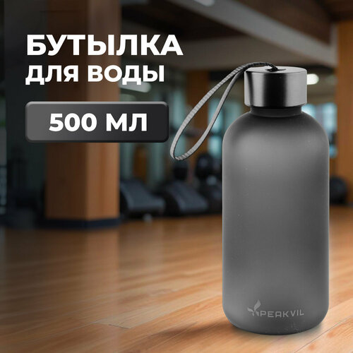 Бутылка для воды 500 мл спортивная для напитков в школу, для фитнеса, черная бутылочка Peakvil