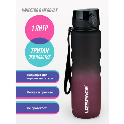 Бутылка для воды спортивная из Тритана 1 литр черно-бордовый