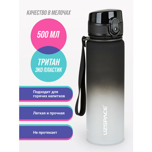 Бутылка для воды спортивная из Тритана UZSPACE 500 мл черно-белый