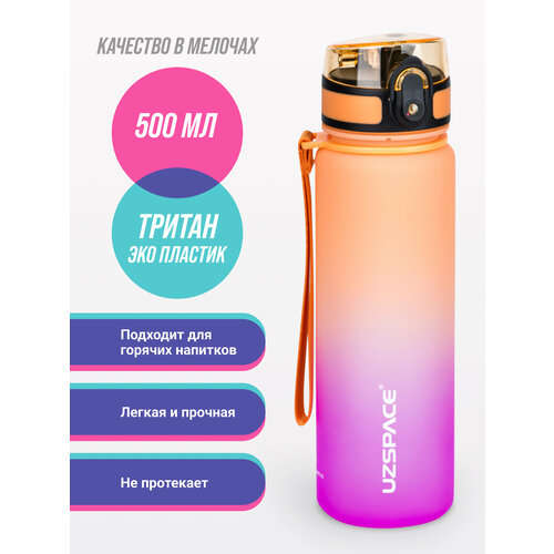Бутылка для воды спортивная из Тритана UZSPACE 500 мл фиолетово-оранжевый