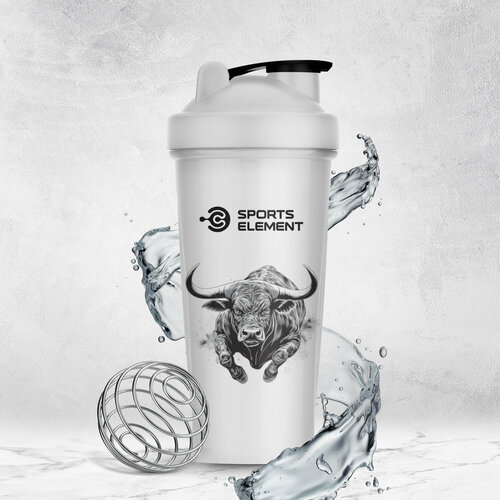 Шейкер для спортивного питания Sports Element "Black bull" , 600 мл. С шариком
