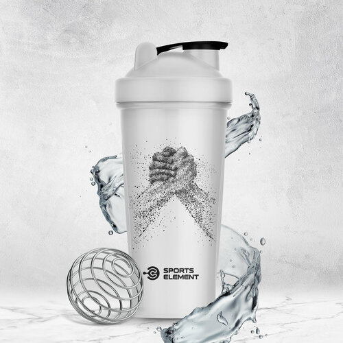 Шейкер для спортивного питания Sports Element – незаменимая вещь для людей , ведущих активный образ жизни . Спортивное питание подразумевает употребление питательных коктейлей , которые легко приготовить буквально на бегу за считанные минуты . Протеин спортивное питание – это сухая смесь . Её нужно засыпать в шейкер , добавить воды , закрыть крышку , встряхнуть – вкусное и полезное спорт питание готово ! Шейкер для коктейлей спортивный сделан из прочного пищевого пластика . Материал не выделяет токсичных веществ , поэтому он полностью безопасен даже для детей . Пластик с закрытыми порами не впитывает запахи . Шейкеры моются тёплой водой и обычными бытовыми средствами . Внутрь емкости 600мл помещается металлический шарик , который быстро взбивает продукты до идеальной консистенции . Венчик выполнен из нержавеющей стали . Сбоку на стакане есть мерная шкала . Чтобы приготовить спортивное питание протеин , нужно соблюдать чёткие пропорции . С помощью шкалы удобно контролировать уровень содержимого . Шейкер для воды можно взять с собой на тренировку , прогулку , в путешествие . Благодаря компактным размерам он поместится в любую сумку или рюкзак и при этом имеет оптимальный объём для полноценной порции спортивного питания – 600 мл . Закручивающуюся крышку легко открыть одной рукой , не прилагая особых усилий . Бутылка оснащена клапаном для удобного питья . Шейкеры спортивные бренда Sports Element герметичны : можно не бояться , что жидкий протеин прольётся в сумку даже во время бега .
