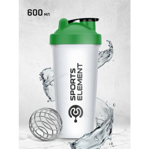 Шейкер для спортивного питания Sports element "Хрусталь зеленый" 600 мл с шариком (венчиком)