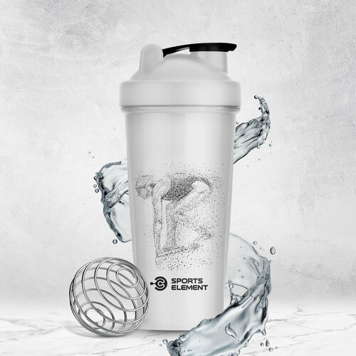 Шейкер для спортивного питания Sports Element – незаменимая вещь для людей , ведущих активный образ жизни . Спортивное питание подразумевает употребление питательных коктейлей , которые легко приготовить буквально на бегу за считанные минуты . Протеин спортивное питание – это сухая смесь . Её нужно засыпать в шейкер , добавить воды , закрыть крышку , встряхнуть – вкусное и полезное спорт питание готово ! Шейкер для коктейлей спортивный сделан из прочного пищевого пластика . Материал не выделяет токсичных веществ , поэтому он полностью безопасен даже для детей . Пластик с закрытыми порами не впитывает запахи . Шейкеры моются тёплой водой и обычными бытовыми средствами . Внутрь емкости 600мл помещается металлический шарик , который быстро взбивает продукты до идеальной консистенции . Венчик выполнен из нержавеющей стали . Сбоку на стакане есть мерная шкала . Чтобы приготовить спортивное питание протеин , нужно соблюдать чёткие пропорции . С помощью шкалы удобно контролировать уровень содержимого . Шейкер для воды можно взять с собой на тренировку , прогулку , в путешествие . Благодаря компактным размерам он поместится в любую сумку или рюкзак и при этом имеет оптимальный объём для полноценной порции спортивного питания – 600 мл . Закручивающуюся крышку легко открыть одной рукой , не прилагая особых усилий . Бутылка оснащена клапаном для удобного питья . Шейкеры спортивные бренда Sports Element герметичны : можно не бояться , что жидкий протеин прольётся в сумку даже во время бега .