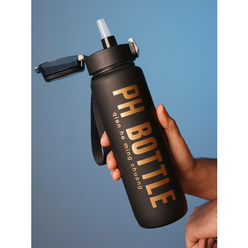 Бутылка спортивная с трубкой 1000 мл, бутылка для питья воды 1 литр, черный