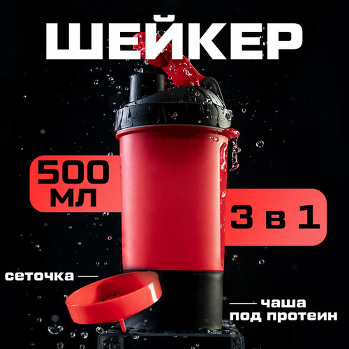 Шейкер спортивный SVOBODA VOLI с чашей под протеин, красно-чёрный, 500 мл