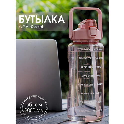 Фитнес бутылка для воды 2 литра с мотивационной шкалой - идеальный вариант, чтобы выпивать суточную норму воды. Бутылка для спорта позволяет контролировать потребление жидкости и водного баланса. Спортивная бутылка для воды является незаменимым спутником каждого человека, который ведет активный образ жизни, много работает, занимается спортом и путешествует. Большая бутылка для воды спортивная изготовлена из прочного экологичного материала тритан, устойчива к ударам, легкая и удобная. Не смотря на большой объем шейкер для воды удобно держать в руках и носить с собой. Емкость бутылки для питья оснащена широким горлышком и достающей до дна съемной силиконовой трубкой, которую легко можно вынуть и помыть. Крышка клапан открывается при легком нажатие кнопки, и также блокируется при закрытии для защиты от проливания.
