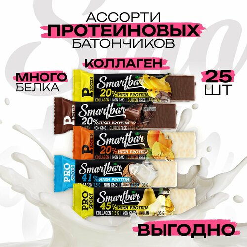 Протеиновые батончики SmartBar Protein Ассорти (Банан, Шоколад, Абрикос, PRO Кокос, PRO Груша), 25 шт.