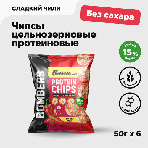 Bombbar Чипсы протеиновые цельнозерновые со вкусом "Сладкий чили", 50 г х 6 уп