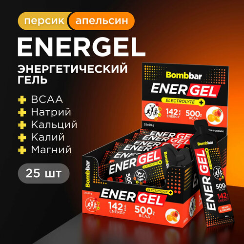 Bombbar Питьевой энергетический гель для бега и марафона "Персик-апельсин", 25шт х 60г