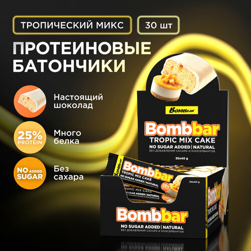 Bombbar Протеиновые батончики в шоколаде без сахара "Торт тропический микс", 30шт х 40г