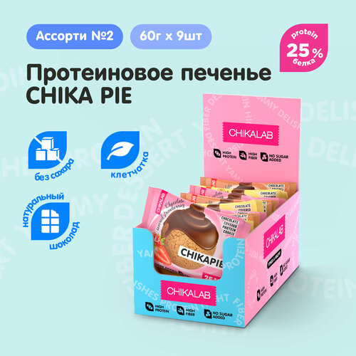 CHIKALAB CHIKAPIE Протеиновое печенье в шоколаде без сахара Ассорти 2, 9шт х 60г