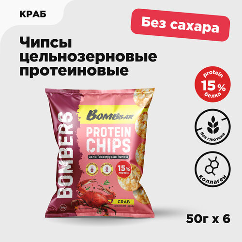Чипсы протеиновые цельнозерновые BOMBBAR со вкусом "Краб", 6шт х 50г