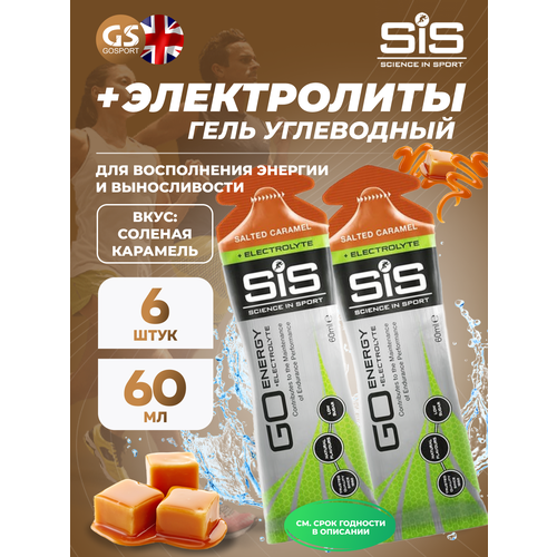 Гель питьевой SCIENCE IN SPORT (SiS) Go Energy + Electrolyte Gels 6 x 60 мл + электролиты, Соленая карамель