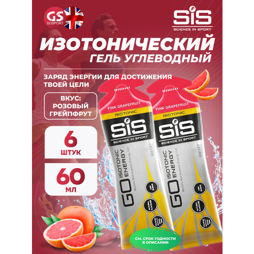 Гель питьевой SCIENCE IN SPORT (SiS) GO Isotonic Energy Gels 6 x 60 мл, Розовый грейпфрут