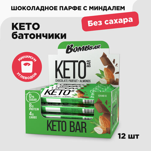 Кето батончики Bombbar без сахара, Шоколадное парфе с миндалем, 40г. х 12 шт.