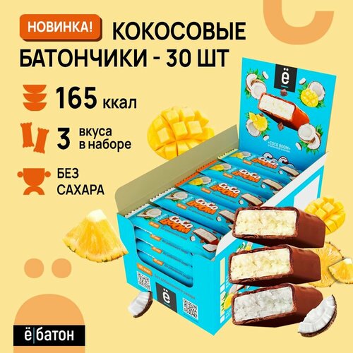 Кокосовые пп батончики ё|батон без сахара 30 шт Ассорти вкусов: манго, кокос, ананас