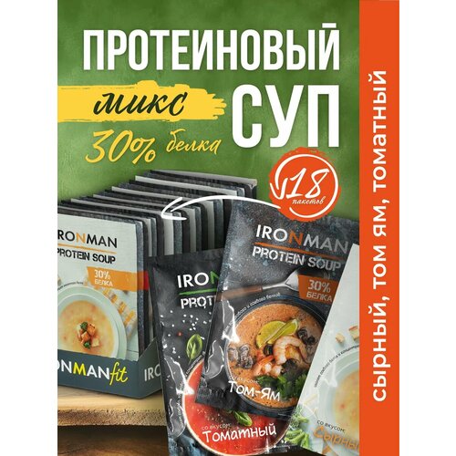 Набор супов IRONMAN, протеиновые, быстрого приготовления, микс вкусов, в пакетах, 18шт.