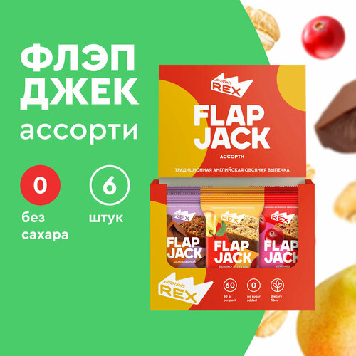 Печенье овсяное протеиновое ProteinRex без сахара Flapjack Ассорти, 6шт шт х 60 г, низкокалорийный десерт, ПП сладости, спортивное печенье