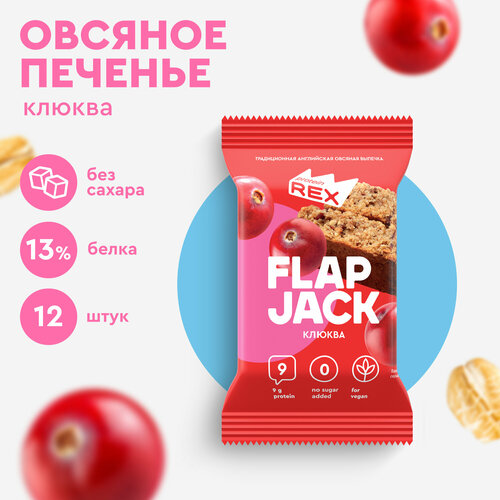 Печенье овсяное протеиновое ProteinRex без сахара Flapjack Клюква, 12шт шт х 60 г, низкокалорийный десерт, ПП сладости, спортивное печенье