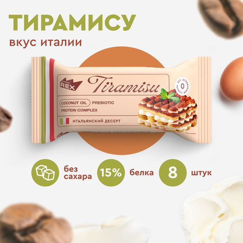 Печенье протеиновое без сахара ProteinRex Пирожное Тирамису 8 шт десерт низкокалорийный тортик, батончик, 157 ккал