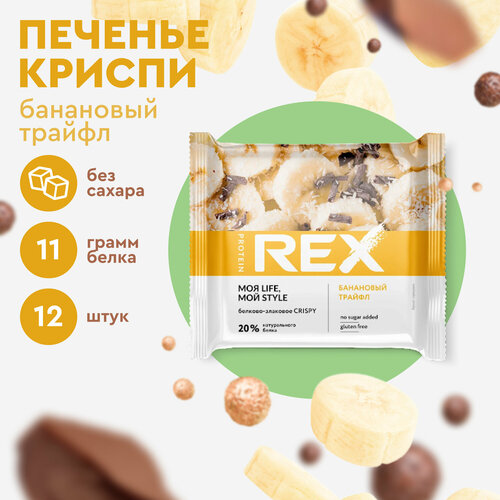 Печенье протеиновое ProteinRex Crispy Банановый трайфл без сахара, 12шт х 55 г, 190 ккал, десерт, спортивное питание, ПП сладости, спортивное печенье