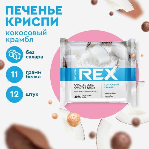 Печенье протеиновое ProteinRex Crispy Кокосовый крамбл без сахара, 12шт х 55 г, 190 ккал, десерт, спортивное питание, ПП сладости, спортивное печенье