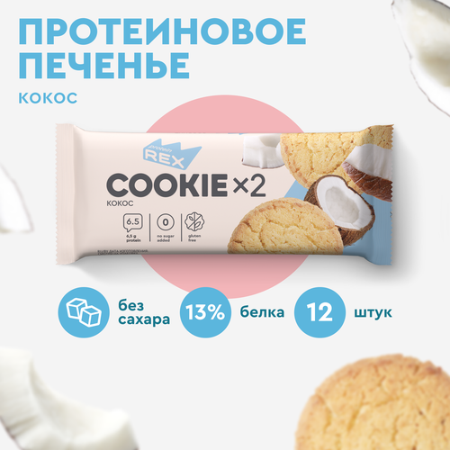 Печенье протеиновое ProteinRex Кокос COOKIE 12уп х2шт без сахара 50 г, 170 ккал, овсяный десерт, спортивное питание, ПП сладости, спортивное печенье