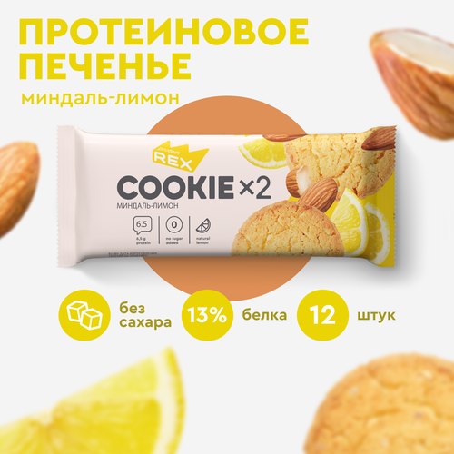 Печенье протеиновое ProteinRex Миндаль-лимон COOKIE 12уп х2шт без сахара 50 г, 170 ккал, овсяный десерт, спортивное питание, ПП сладости, спортивное печенье