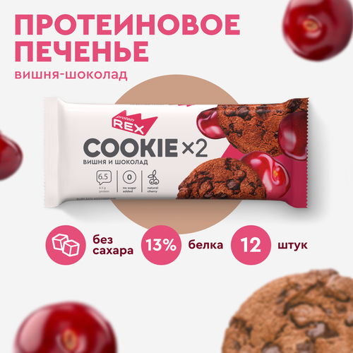 Печенье протеиновое ProteinRex Шоколад-вишня COOKIE 12уп х2шт без сахара 50 г, 170 ккал, овсяный десерт, спортивное питание, ПП сладости, спортивное печенье