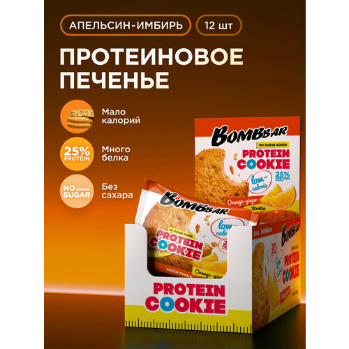 Протеиновое печенье без сахара Bombbar, Апельсин-имбирь, 40г х 12 шт.