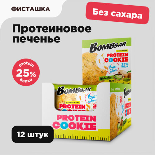 Протеиновое печенье без сахара Bombbar, Фисташка, 40г х 12 шт.