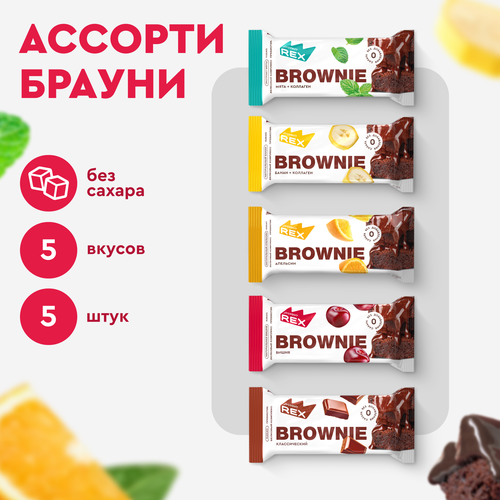 Протеиновое печенье без сахара Брауни ProteinRex Ассорти мини 5 шт х 50 г, 5 вкусов батончики , пирожное, десерты, ПП сладости для похудения