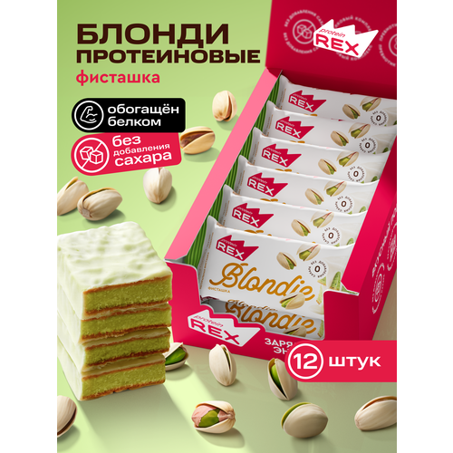 Протеиновое печенье без сахара Брауни ProteinRex Блонди Фисташка 12 шт х 50 г, спортивное питание