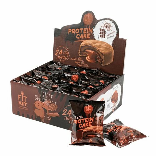 Протеиновое печенье FitKit Extra Protein Cake, 24 шт по 70 г, вкус: тройной шоколад