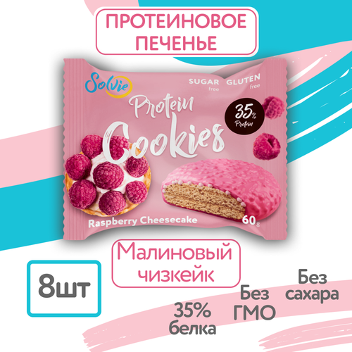 Протеиновое печенье, Solvie, Малиновый чизкейк, 8шт по 60г, Без сахара, в двойной глазури
