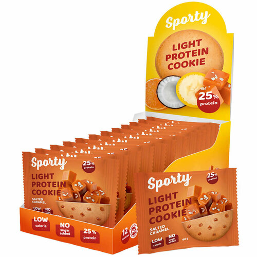 Протеиновое печенье Sporty Protein Light без сахара (12 шт х 40 г) Солёная карамель