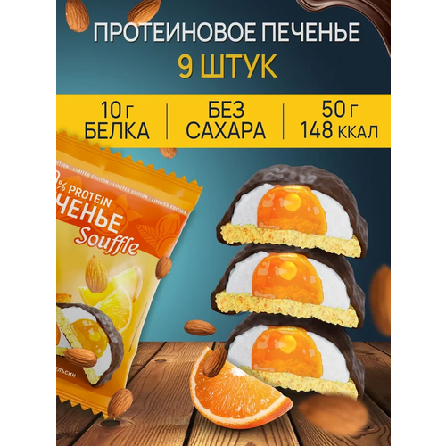 Протеиновое печенье ё|батон с белковым суфле без сахара 9 шт по 50 г Миндаль-Апельсин