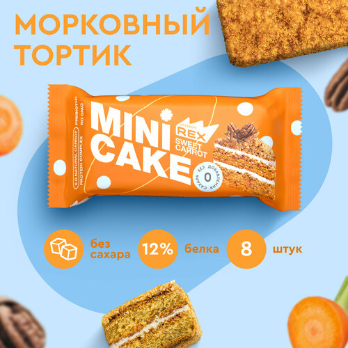 Протеиновое пирожное ProteinRex Тортик Морковный 8 шт десерт без сахара, низкокалорийное печенье, батончики, ПП сладости 160 ккал
