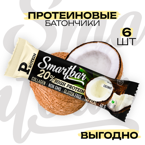 Протеиновые батончики "Кокос в темной глазури" Protein 20% SmartBar, 40г (6шт)