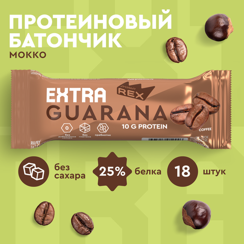 Протеиновые батончики ProteinRex EXTRA Мокко с экстрактом гуараны 18 шт х 40 г без сахара, спортивное питание,ПП сладости, спортивное печенье 120 ккал
