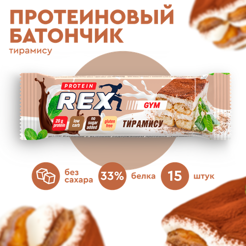 Протеиновые батончики ProteinRex GYM Тирамису 15 шт х 60 г без сахара, десерт, спортивное питание, ПП еда, спортивные батончики