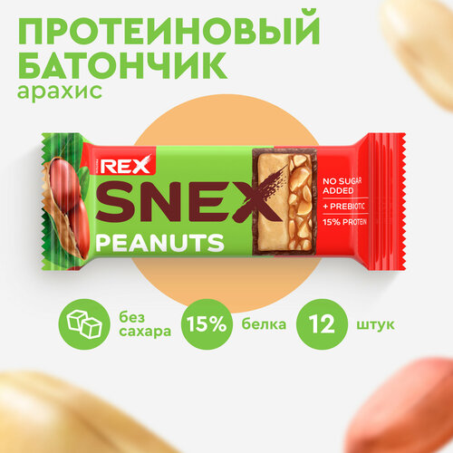 Протеиновые батончики ProteinRex Snex Арахис 12шт без сахара, 193 ккал десерт, спортивное питание, ПП еда, спортивные батончикии